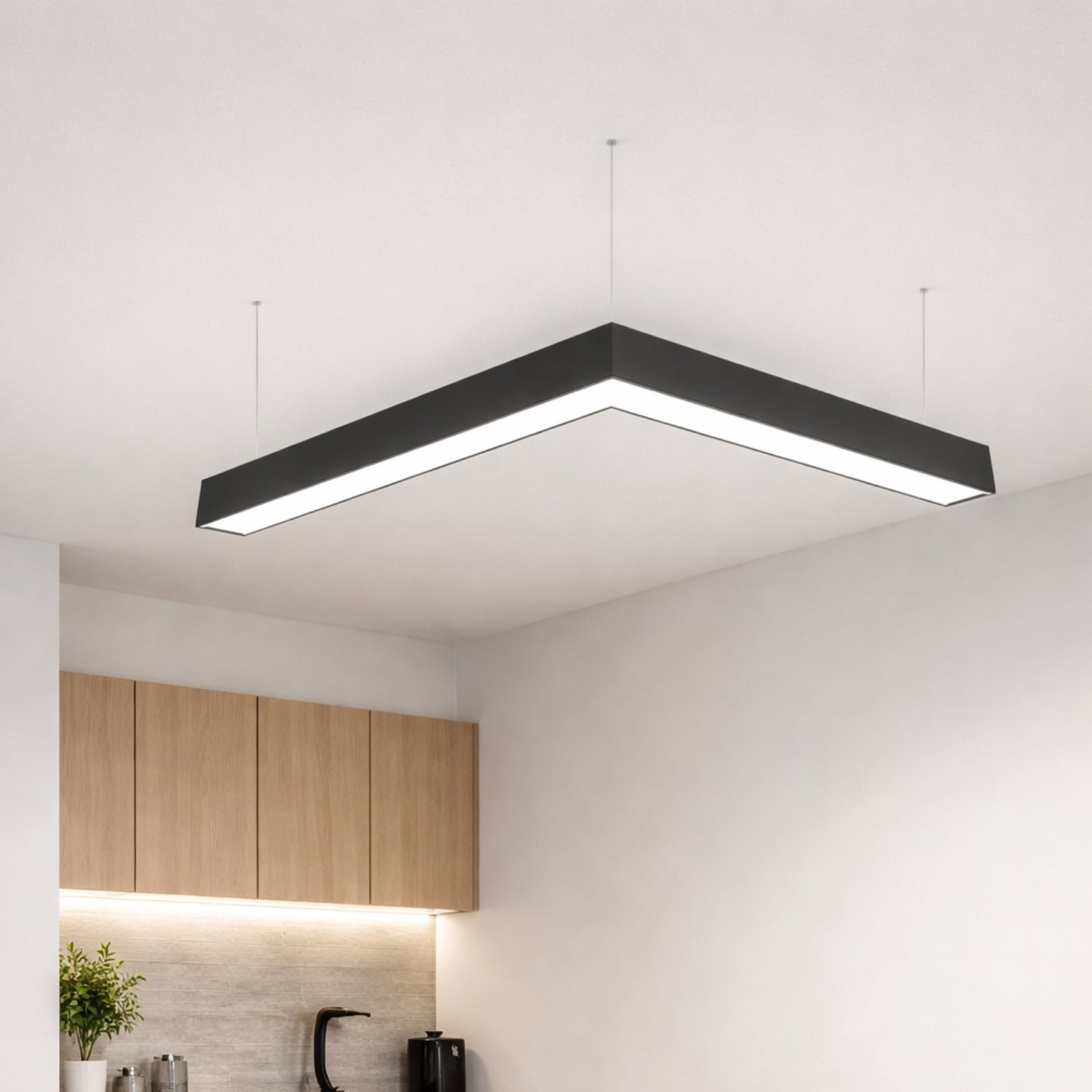 Rohové lineární LED svítidlo ProConnect B s úhlem 120° je ideálním doplňkem pro vytváření souvislých světelných linií v moderních interiérech. Umožňuje elegantně a plynule propojit jednotlivá svítidla do tvaru „L“, což oceníte zejména v kancelářích, open space prostorech, chodbách nebo komerčních instalacích.