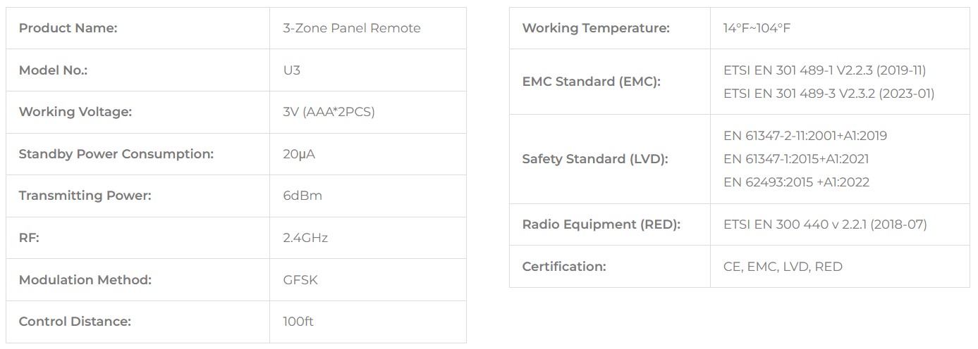 Dotykový panel RGB+CCT, 3 zóny, 2 x AAA, U3, Mi-Light