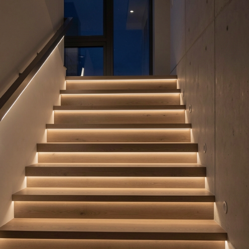 Správně osvětlené schody jsou základem bezpečného domova. LED pásky umístěné pod hranu jednotlivých schodů nebo v boční drážce vytvoří nejen bezpečné prostředí, ale i působivý vizuální efekt, který moderní interiéry přímo vyžadují.