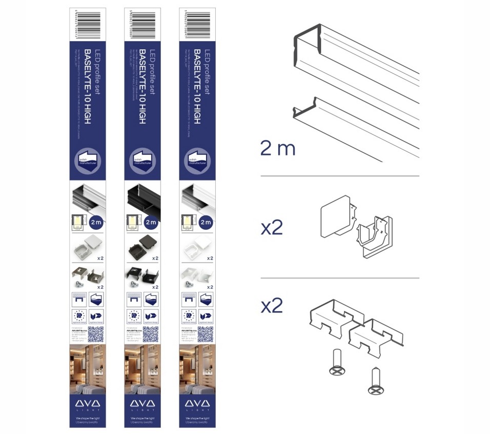 SET AVA BASELYTE‑10 HIGH – stříbrný elox je časově úsporné a kompletní řešení, které kombinuje jednoduchou montáž, flexibilitu a elegantní design, vhodné jak pro domácí, tak pro komerční instalace.