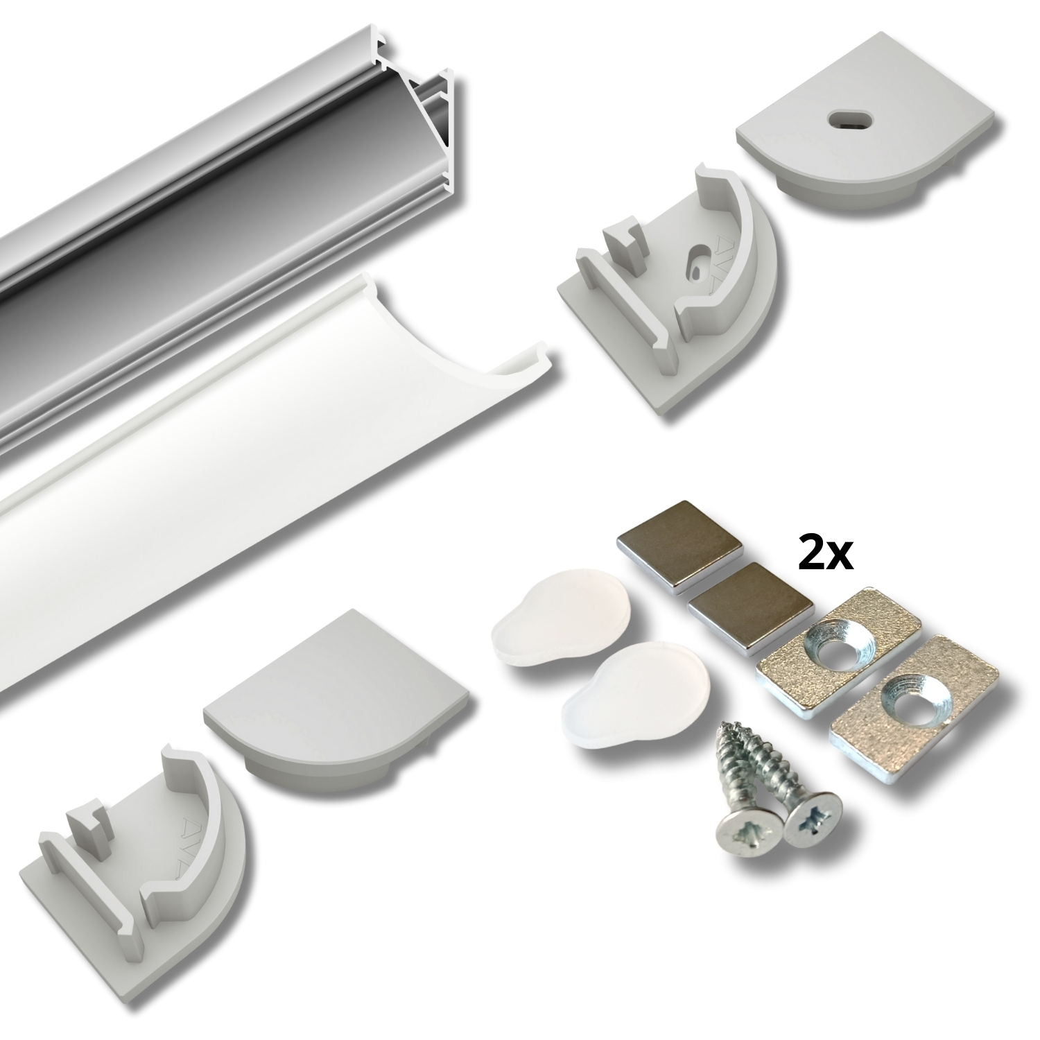 SET LED profilu AVA MAGLYTE-10 ANGULAR – stříbrný elox je ucelené řešení pro elegantní a funkční rohové LED osvětlení interiéru. Set obsahuje všechny potřebné komponenty pro rychlou instalaci.