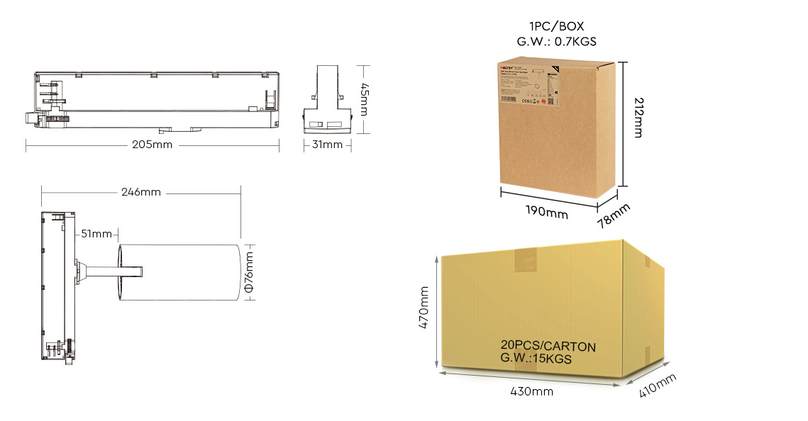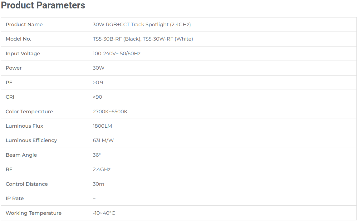Track svítidlo RGB + CCT 30W, černé, 2,4GHz, 1800 Lm, TS5-30B-RF, Mi-Light